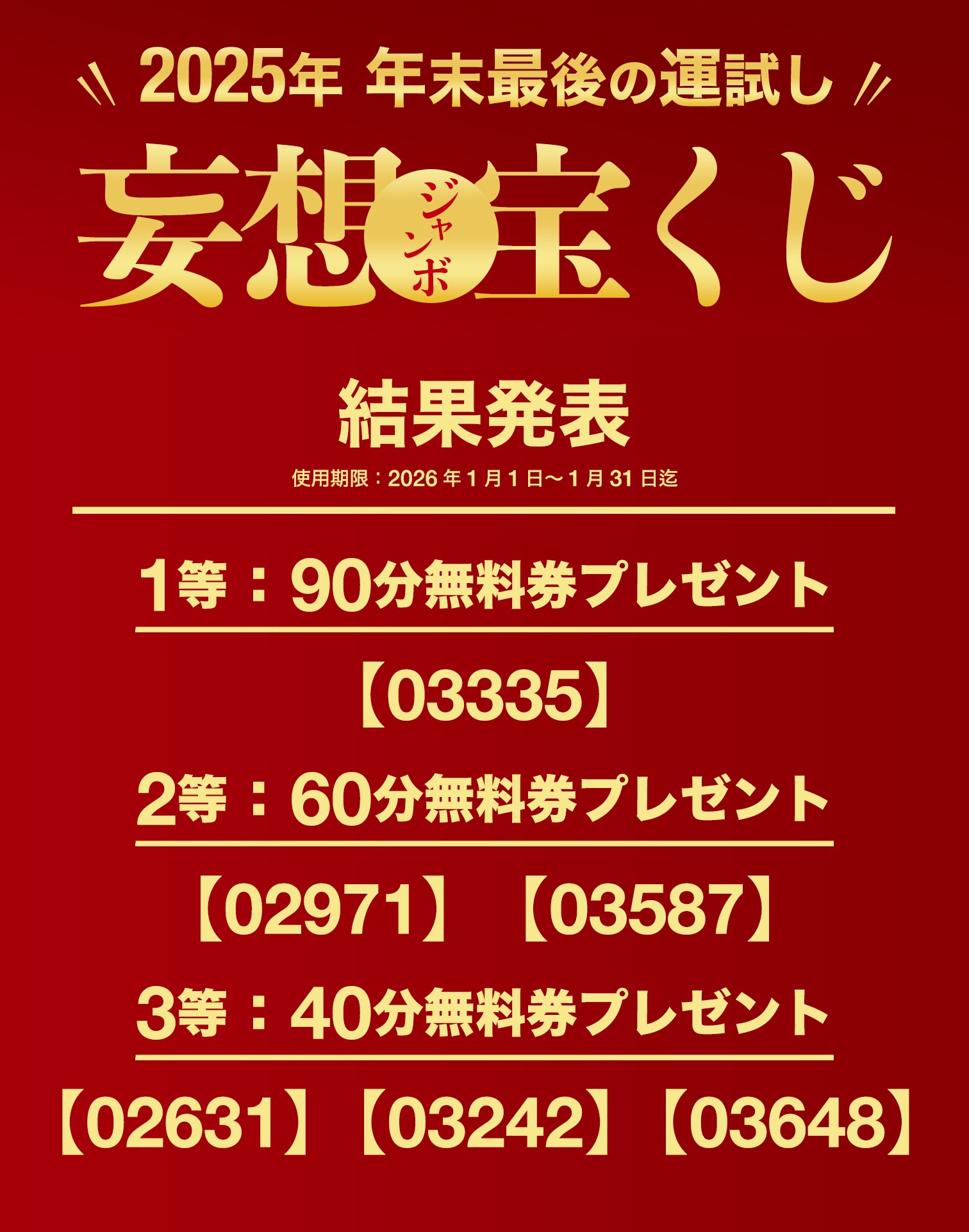 妄想ジャンボ宝くじの当たり券が明日よりご利用可能です。