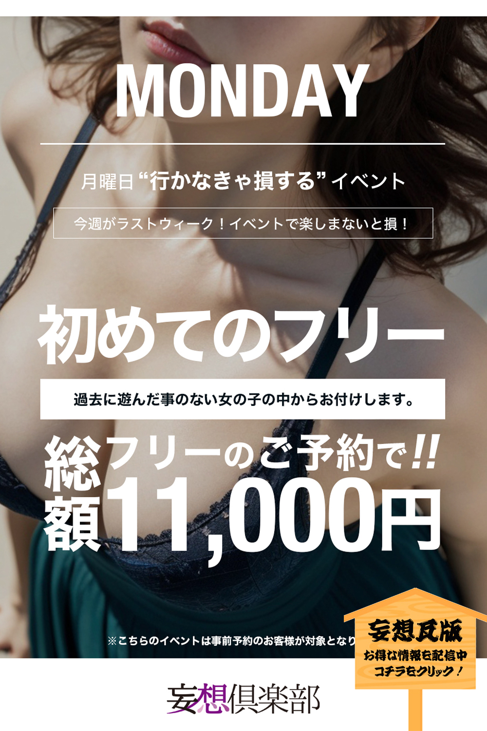 2025 9月 22日 16:54 今日の日替わりは…? 皆様のこんばんは! ほんじつの日替わりは…? 初めてフリー! 女の子お任せで遊ばれる方は、 今まで遊んだことの無い女の子からご案内します! 人気のアノ女の子で遊べるかもしれません! 是非ご利用下さい!