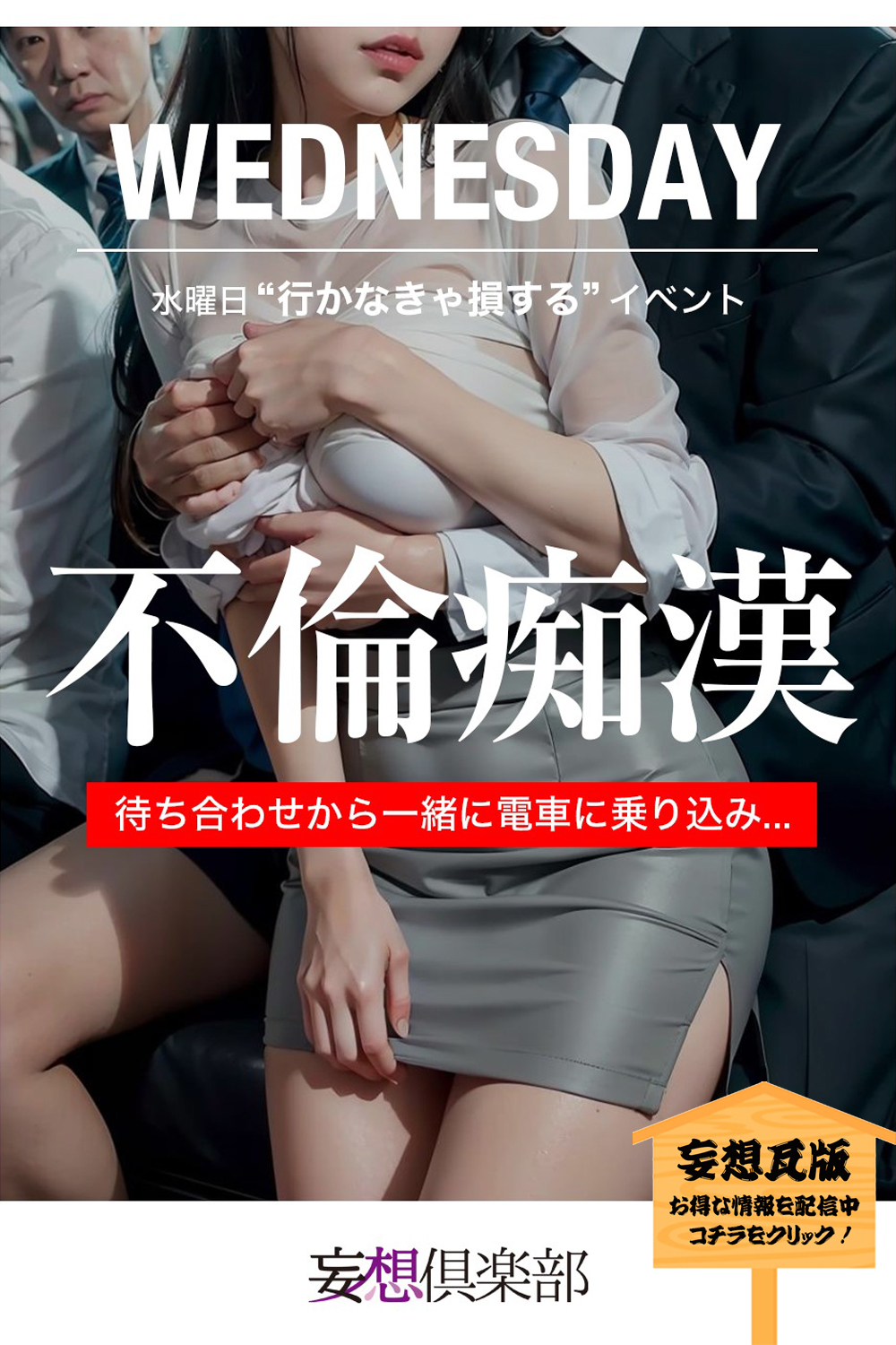 2025 10月 15日 16:45 一緒に電車に乗り込んで下さい… 本日の日替わりイベントは… 『不倫痴漢』 電車に痴漢相手と一緒に乗り込んで、 この後を想像しながら、 思う存分に痴漢してください! 貴方の妄想を実現してください!