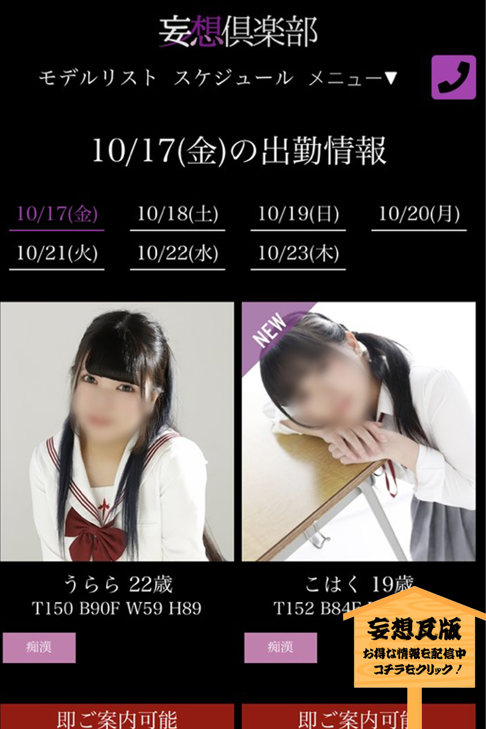 出勤情報の【即ご案内可能】