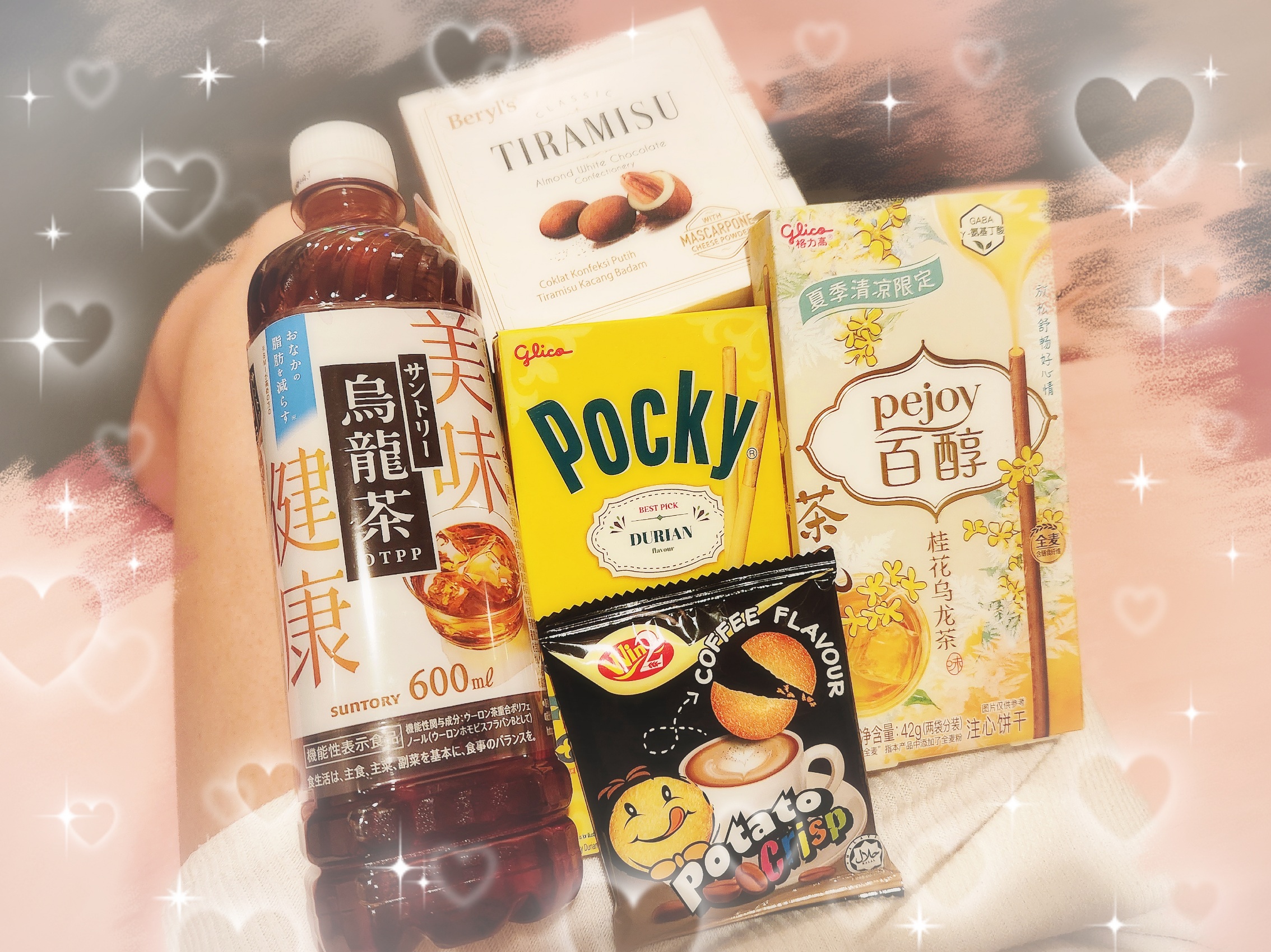 真ん中のドリアン味ポッキーと、何かのお茶味トッポ?は