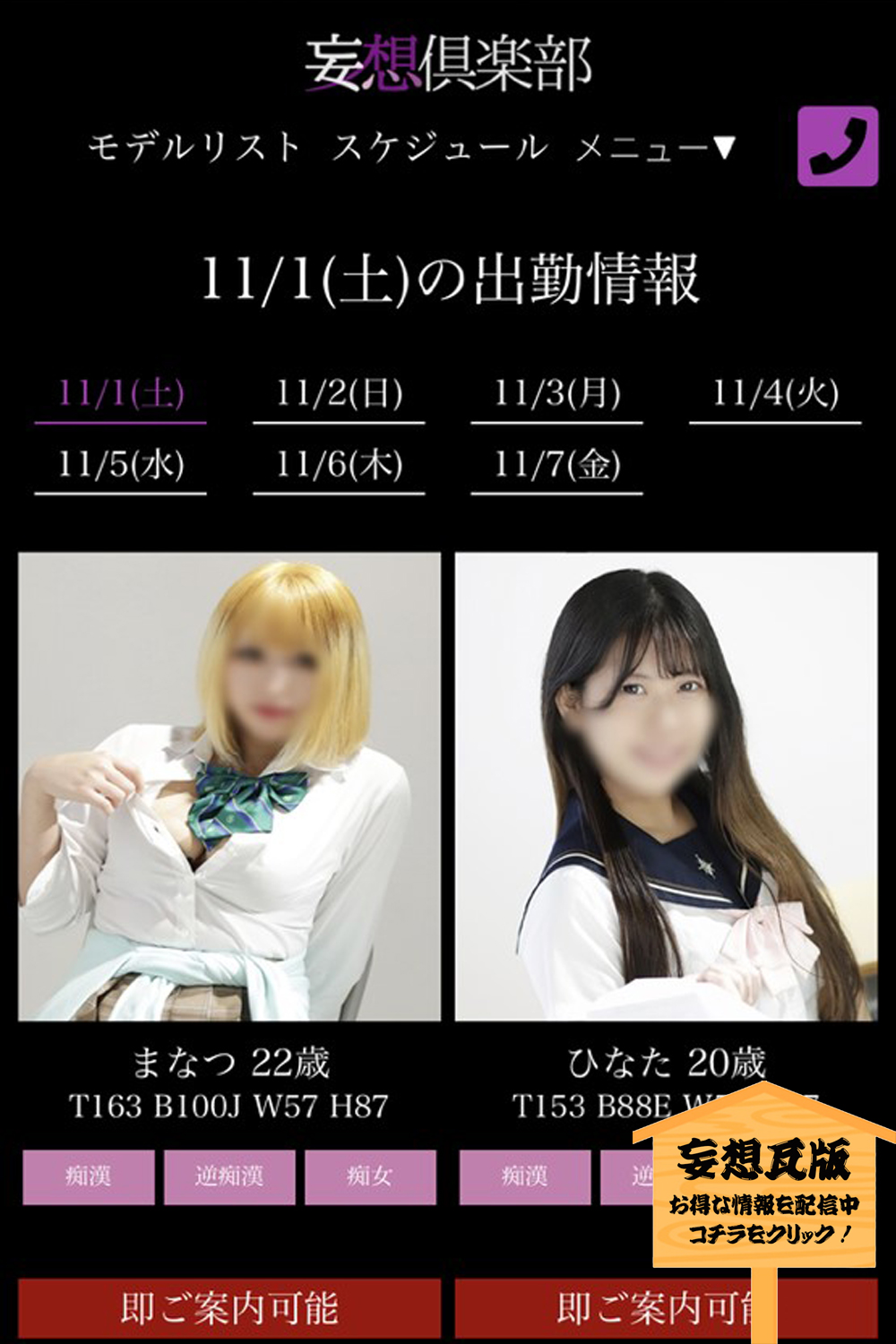 出勤情報の【即ご案内可能】