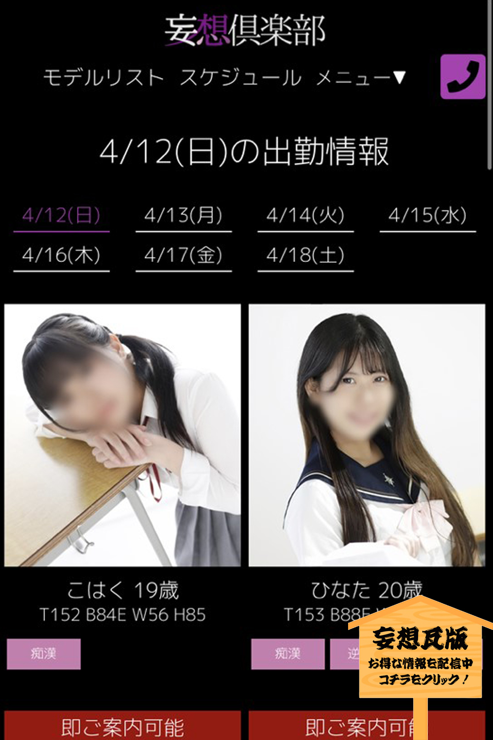 出勤情報の【即ご案内可能】